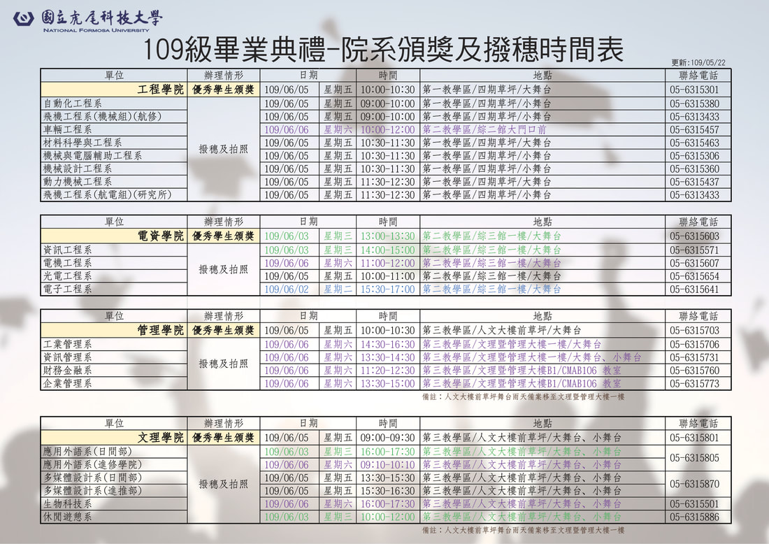 畢業典禮系院得獎名單與行程公告如下: